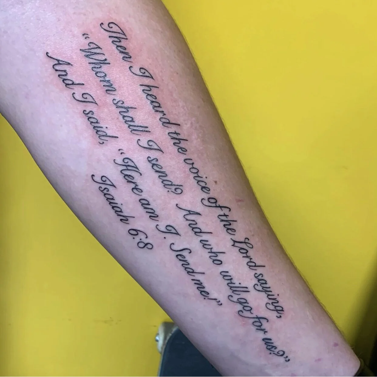 Here i am lord send me tattoo (isaiah 6:8) faith written into cross tattoo on wrist. To tyler.funwithcraigslist@gmail.com or suffer a fate far worse than this fallen warrior. #repost @anapautv ・・・ *plays you should see me in a crown by billie eilish in the background* thank you @momentaryink for my temporary tattoos π. Walk by faith, not by sight tattoo on foot: Then said i, here am i.